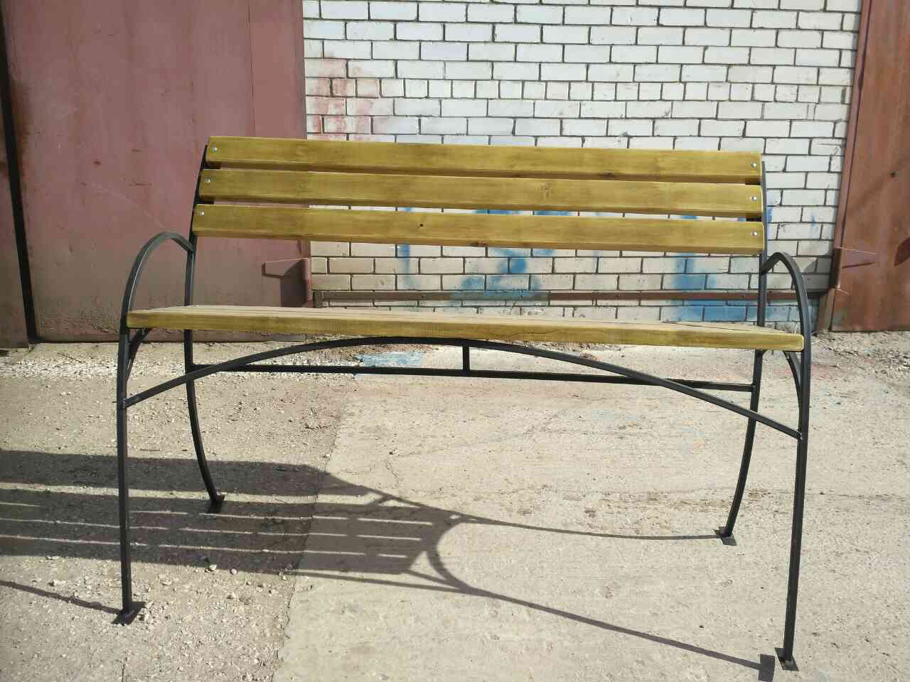 Сиденье выполнено из бруса сечением 100х40. Спинка – 100х30мм. Брус обработан пропиткой, подходящей для уличного использования.